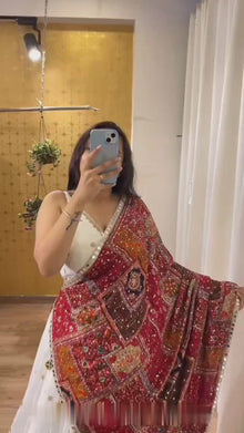 Make a royal statement with this Premium Georgette Lehenga adorned with a vibrant digital print and heavy sequins that shimmer with every step. Detailed with foil mirror work and a charming samosa lace finish, this semi-stitched lehenga is your perfect pick for bridal and festive occasions.